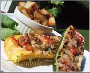 - CHAUFFER le four à 350 °F. Couper les courgettes en deux sur la longueur; évider le centre et hacher fin. Mettre de côté. Déposer les moitiés, côtés évidés vers le haut, dans un plat peu profond.