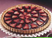- Verser le mélange dans la croûte déjà prête. Recouvrir d'une pellicule de plastique; réfrigérer jusqu'à consistance ferme. Avant de servir, enlever la pellicule de plastique. Couper les fraises en tranches de 1/4 po; disposer sur la tarte. Servir froid; réfrigérer le reste de la tarte.