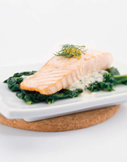 - Dans un poêlon antiadhésif, faire sauter les épinards dans l'huile. Déposer dans un plat allant au four. Transférer le saumon sur les épinards. Faire cuire au four à 150 °C (300 °F) pendant 7 minutes