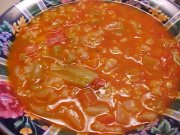 - Faire revenir l'oignon dans l'huile, ajouter le bouillon puis le reste des ingrédients, amener à ébullition.